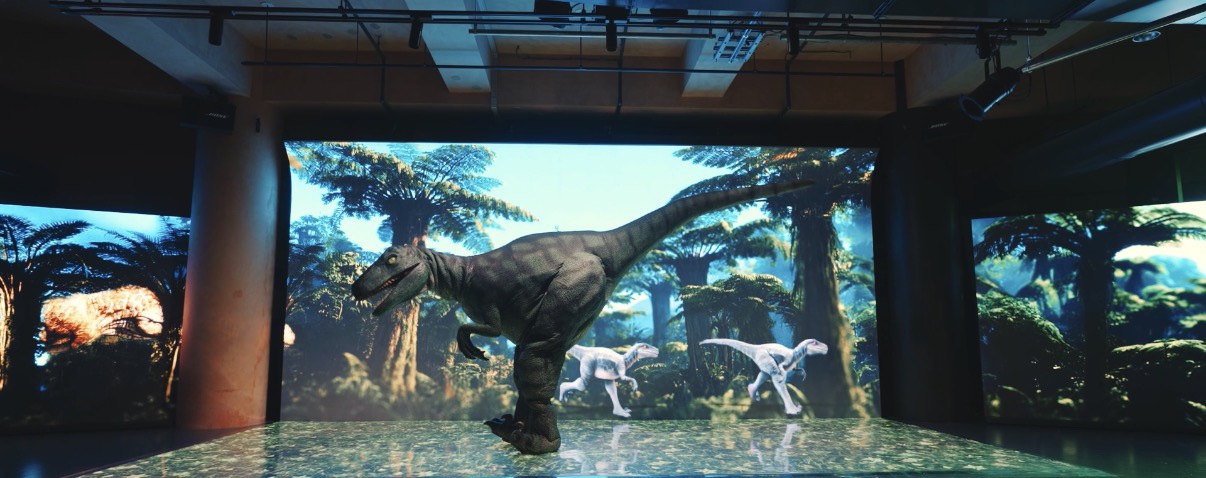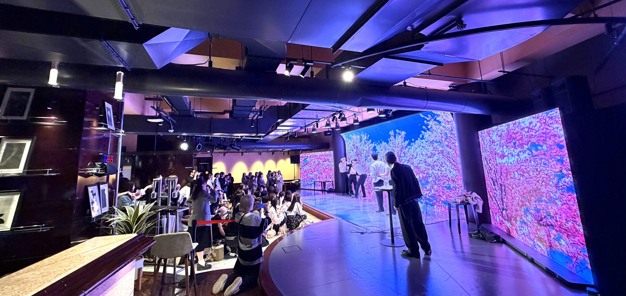 約300インチのメインビジョンと、空間全体を包み込む4面一体型LEDが、