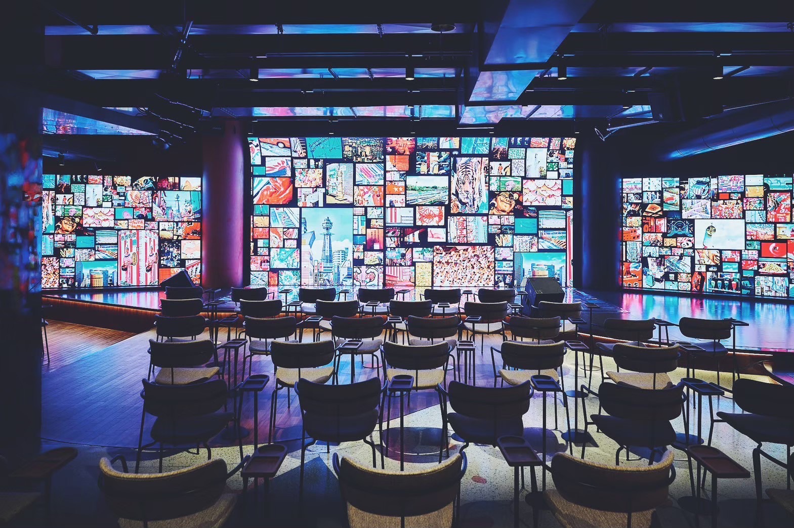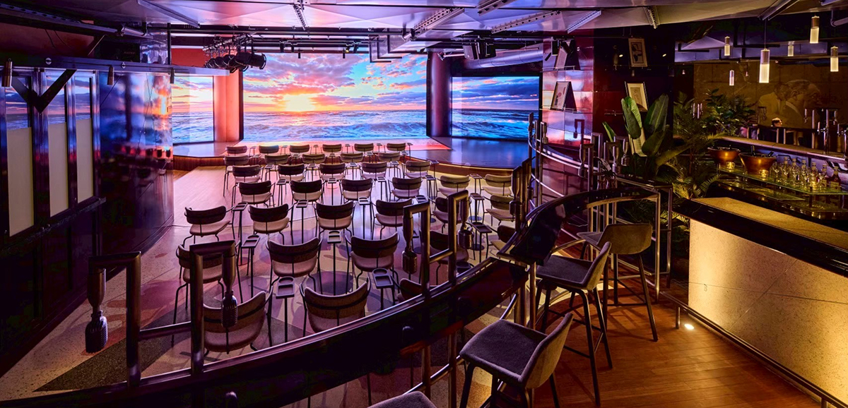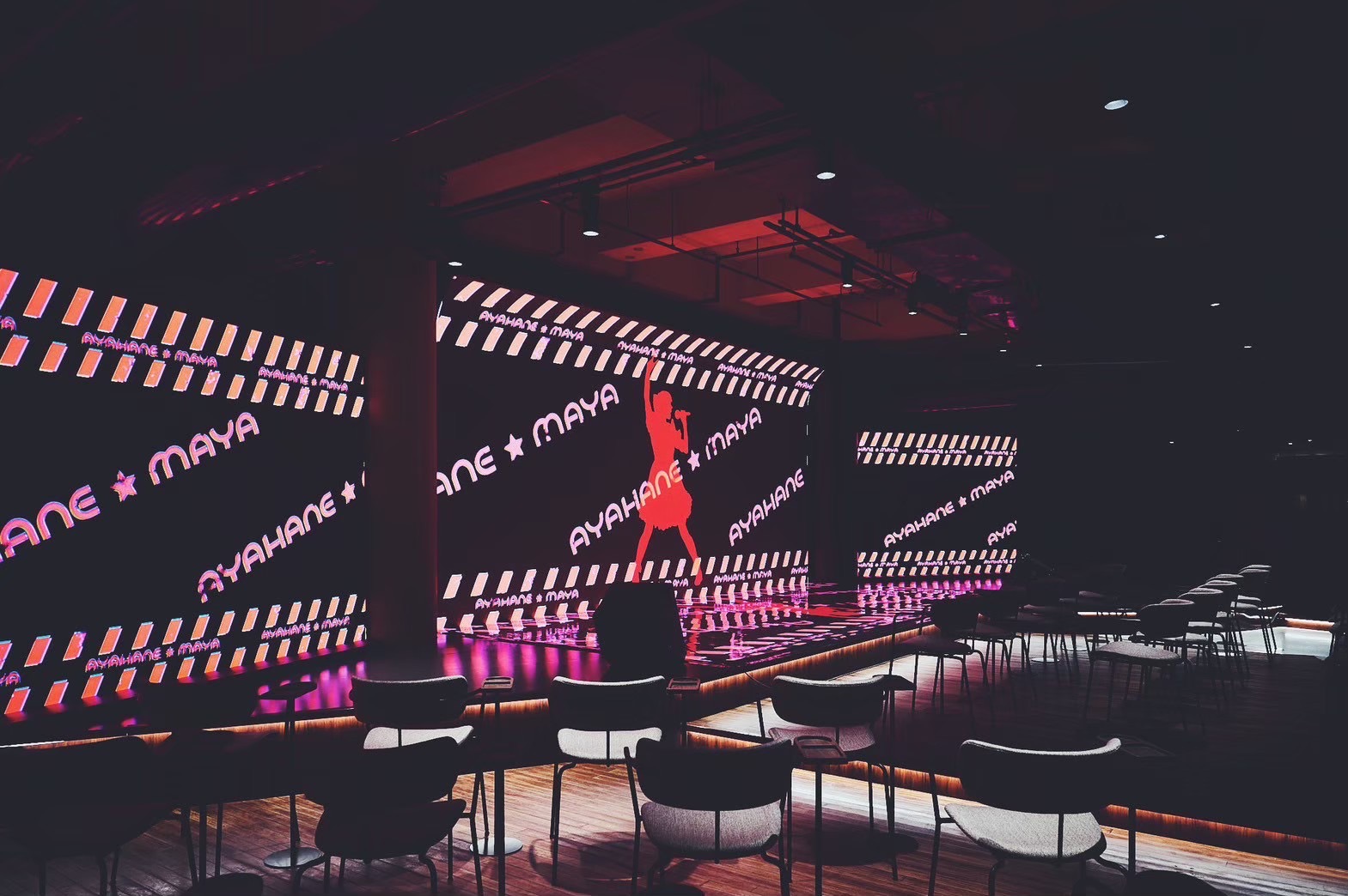 クラシカルモダンなホテル仕様のラウンジと最新のバーチャルプロダクション映像・音響・照明演出が融合し、ステージそのものの価値を高めます。ダイナミックな映像表現と没入感のある演出により、パフォーマンスをより印象的に演出。アーティストの世界観を鮮やかに映し出し、観客の記憶に残る特別なライブ・ショー体験を創り出します。