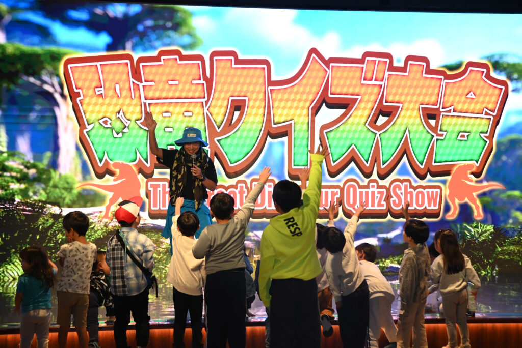 リラックスしながら恐竜映像やクイズでウォームアップ!